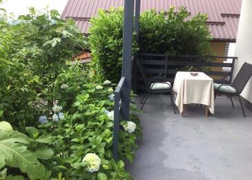 Ferienwohnung bietet Platz für 4 Gäste. Die Betten sind in Schlafzimmern, die es 2 gibt, innerhalb einer Gesamtfläche von 63m2, angeordnet. Die Gäste haben eine eigene Terrasse zur Verfügung, auf der sie in warmen Sommernächten genießen können.