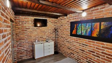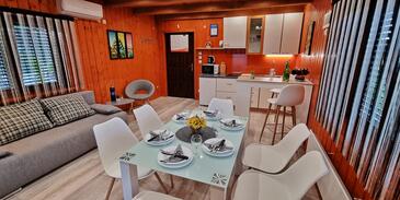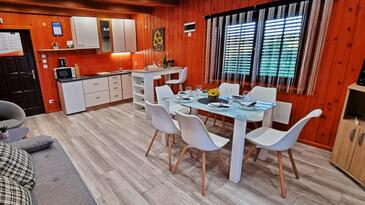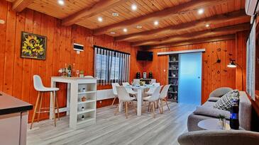 Haus bietet Platz für 6 Gäste. Die Betten sind in Schlafzimmern, die es 3 gibt, und in Wohnzimmer, innerhalb einer Gesamtfläche von 55m2, angeordnet. Die Gäste haben eine eigene Terrasse zur Verfügung, auf der sie in warmen Sommernächten genießen können. Für vollen Genuss und Entspannung gibt es einen privaten Grill für Gäste dieser Unterkunft. Während ihres Aufenthalts können sich Gäste im privaten Schwimmbad entspannen. Räume der gebuchten Unterkunftseinheit werden nicht in eine Ganze verbunden.